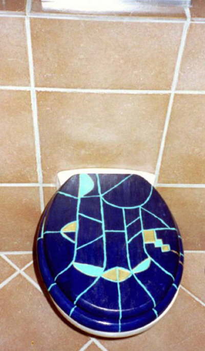 2001 - WC-Sitz aus Holz. Handbemalt (Acryl) und hygienisch mit Lack versiegelt.