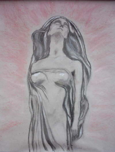 2000 - 35x50cm - Kohle/Acryl auf grauem Papier. Ausschnitt eines asiatischen Tryptychons. - UNVERKÄUFLICH ------Ich fliege-----"Ich schau' auf das MeerIch stehe am StrandUnd mit meinen Füssen spür ich wolkenweichen Sand.Dann schließ' ich die AugenUnd atme tief einRings um mich ist StilleUnd bin doch nicht allein.Ich kann Dich jetzt fühlenGanz warm und ganz nahUnd wenn ich es willIst es als wärst Du jetzt da.Nun heb ich den KopfLeg mein Gesicht an den WindEs ist Dein StreichelnDeine Stimme in mir singt.Bezaubernde WorteErklingen an meinem OhrIch werde ganz leichtUnd schwebe empor.Noch zaghaft und zögerndVoll Sorge zu fallenDoch stetig................"(c)opyright by AnneMarie